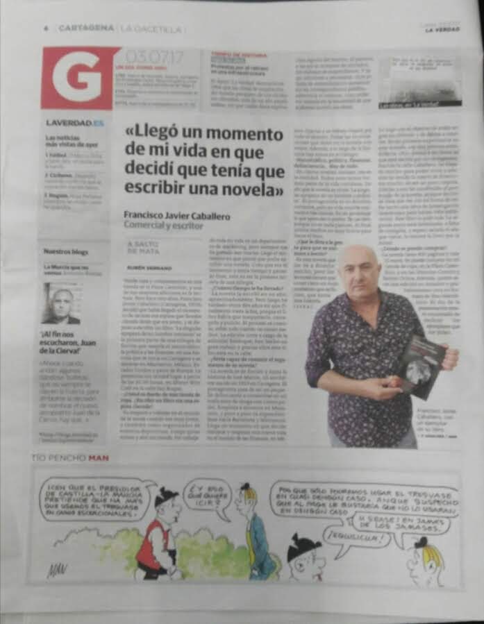 Javier Caballero un escritor de Cartagena, Murcia. Amante de La Manga y el Mar Menor, lugar donde decidió echar raíces, criar a sus hijos y escribir sus novelas.